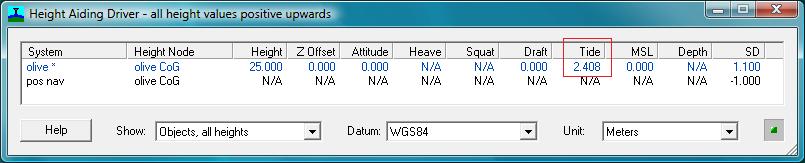 In the Height Aiding Driver display, as shown above, the tidal height is interpolated according to the vessel's position at sea.