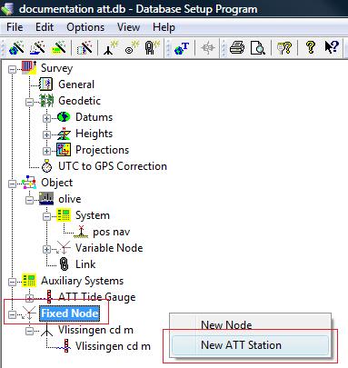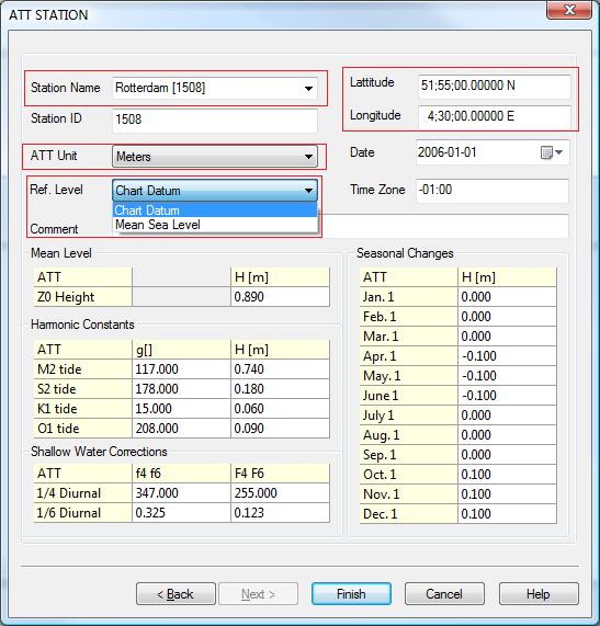 By right clicking on a fixed node and choosing New ATT Station the appropriate wizard is shown that guides you through the steps needed to create a new tide station.