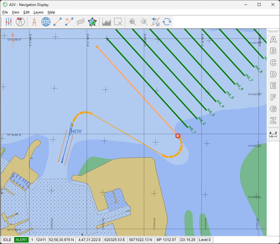 And thirdly in the so-called Swath Coverage Mode you can direct the vessel to steer automatically, based on the previous swath coverage of your multibeam system, which means surveying an area without line planning.