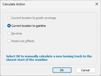 Keep Mainline History: | This setting has only effect when in Swath Coverage mode. This will keep a history of all previous calculated turning tracks where each track will be suffixed with an incrementing number.