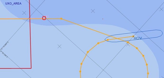 Changing this setting when your vessel is 'outside' the selected survey area will automatically re-calculate the (current) turning track . |