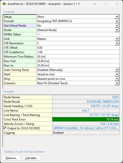 These additional settings will be available when the Kongsberg TNT ($PRTNT,X) format (NMEA look-a-like) is selected: