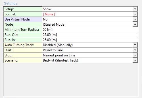 Same Direction Threshold: | This setting affects the minimum turn radius in order to approach the next line. It means that when the vessel (start point) is already approaching the line (i.e. both have same direction) then the track to follow will be just 'connecting the dots' instead of using mathematical turns.