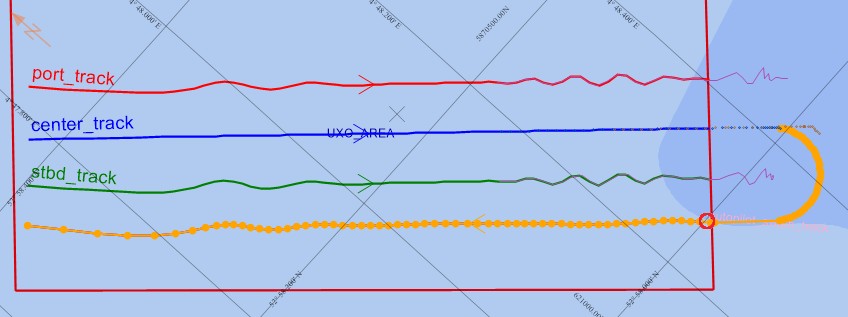 Changing this setting when your vessel is 'outside' the selected survey area will automatically re-calculate the (current) turning track . |