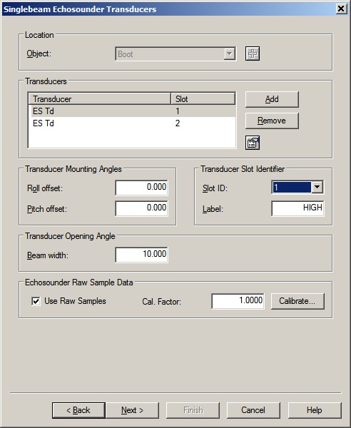 In order to decode the raw acoustic samples (water column data) from each channel, select (or highlight) the relevant Transducer and enable the 'Use Raw Samples' checkbox. Leave the Cal.Factor on 1.0, it is not used.
