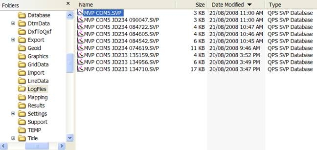 When on-line and the driver receives new profile data from the Sound Velocity Profile System, two files will be created in the project's SVP folder, both with extension *.SVP.
