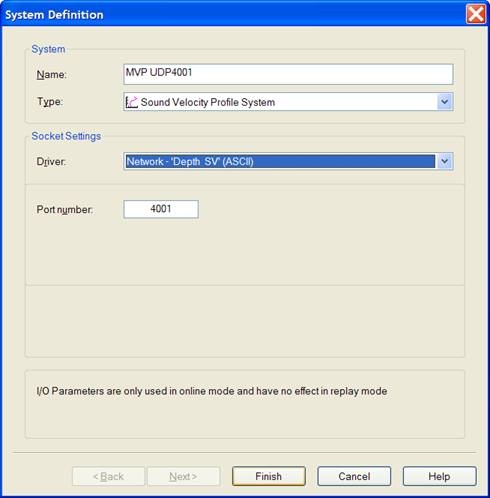 Select in the Controller the Echosounder Settings from the Settings pull down menu, and locate in the Velocity Profile group the SVP system as defined in the Database Setup.