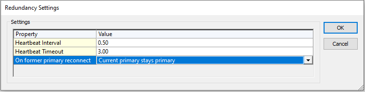 The settings dialog can also be used to determine the redundancy behavior when a 'former primary' comes back online.