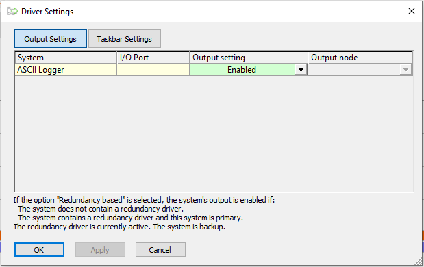 Each output system can be configured to enable/disable its output based on redundancy. Output drivers that have been configured as such will only output data if they are on the system that is 'Primary'.