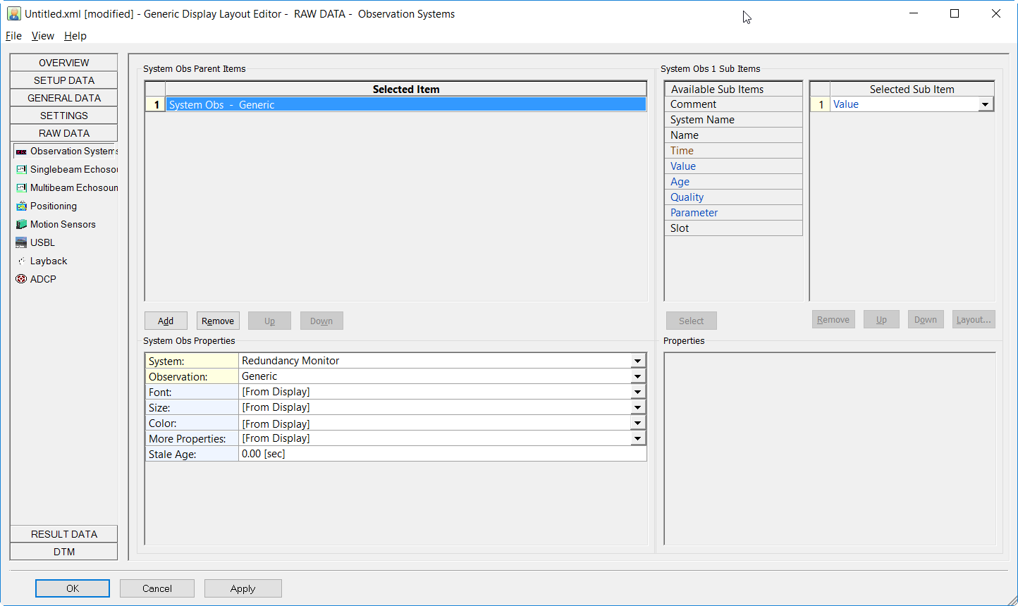 The observation for the redundancy monitor can also be selected in the Generic Layout editor.