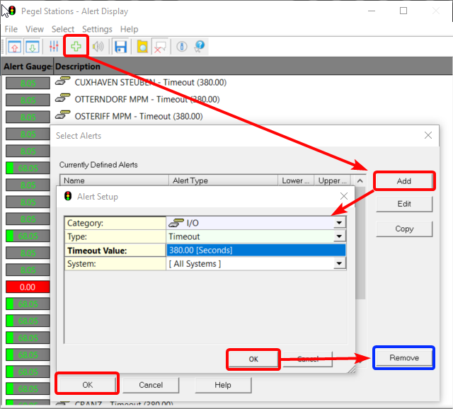 The IO Alerts are useful to identify which station(s) are not updated withing the required time frame(s). It will allow the user to disable malfunctioning stations in the Tide Gauges selection pane (see above)