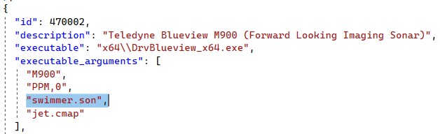 Locate this file in C:\Program Files (x86)\QPS\Qinsy\9.6.0\Drivers and open it with a text editor. Find and replace “swimmer.son” with the your son filename: