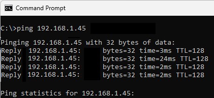 First make sure there is a valid network connection between the Qinsy computer and the sonar unit, e.g with a ping command using the Windows command prompt: