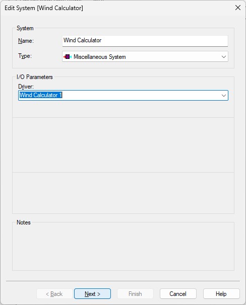 No interface settings are required for this driver, but you do have to define a generic observation that will contain the calculated final wind speed.