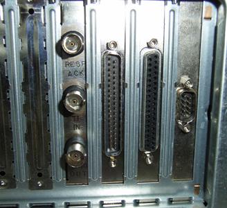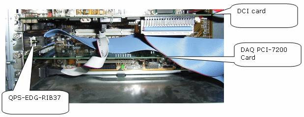 Back panel of PC: from left to right resp., the EdgeTech DCI board, the QPS-EDG-RIB37 connector and the QPS PCI-7200 DAQ card.