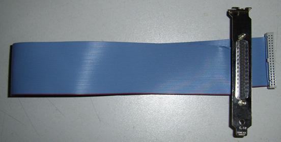 37 Pins ribbon cable 40 pins female PCB header on one end, the other end connects to a 37 pins male delta connector. This delta connector is mounted on a PC-IBMAT-I/O bracket so it can be inserted in a free slot of the acquisition PC. Note that the pins 1-37 should be connected on the PCB header. Pin 1 can be identified by the red marking on the ribbon cable.