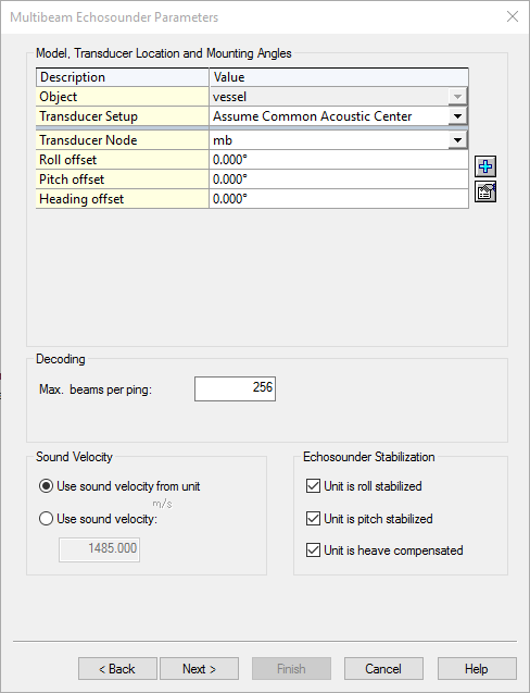 Make sure to synchronize the correction/compensation settings between the WMB software and Qinsy