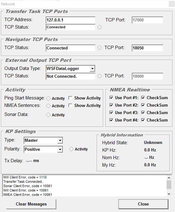 Under "External Output TCP Port", set the Output Data Type to 'WSFSData logger".
