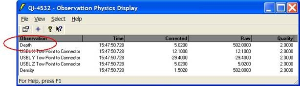The depth observation is decoded as a so-called ROV-Depth observation. You may use this observation in the Computation Setup as the vertical component to position the tow fish object.