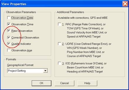 Both the raw and the actual depth value may be monitored on-line using an Observation Physics or a Timeplot Display.
