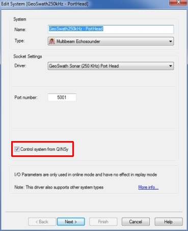 To control the GS+ from Qinsy enable the option 'Control System from QinsSy'.