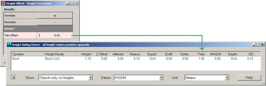 Tide Offset: | The final tide offset value that will be published. This observation can be selected in the Controller's Computation Setup, Object Height, Tide Parameters as Additional Tide Offset. See Controller Setup. |