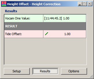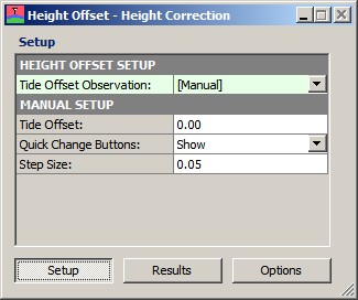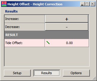 Tide Offset: | Enter the manual tide offset value. You may also use the quick change buttons in the Results menu to modify this value on-the-fly. |