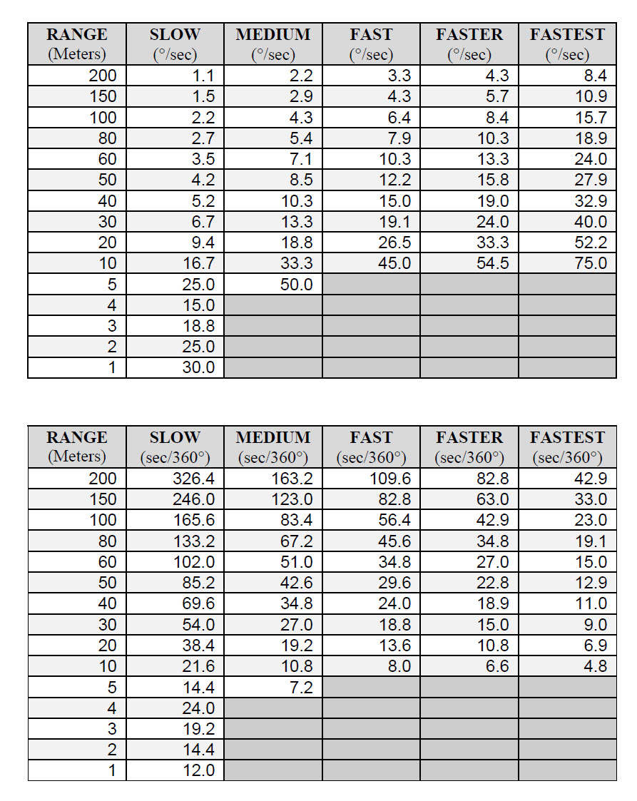 Scan Speed | Select from No Speed, Slow (0.3), Med. (0.6), Fast (0.9), faster (1.2), Fastest (2.4). |