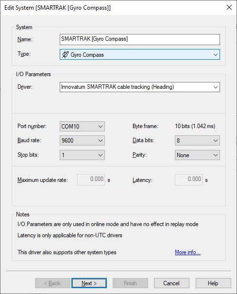 Add a Gyro Compass System to your template setup and select driver "Innovatum SMARTRAK cable tracking (Heading)".