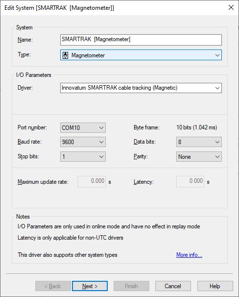 Add a Magnetometer System to your template setup and select driver "Innovatum SMARTRAK cable tracking (Magnetic)".