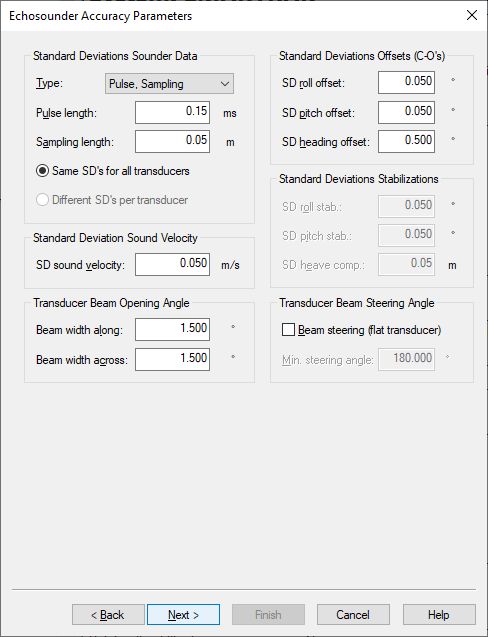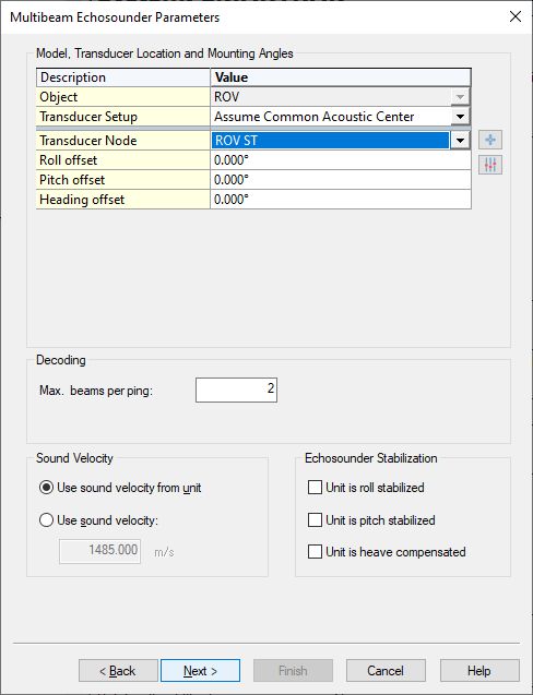 Normally this will be the node location (center of array) of the SMARTRAK unit mounted on the ROV.Set the Max. beams per ping: 2