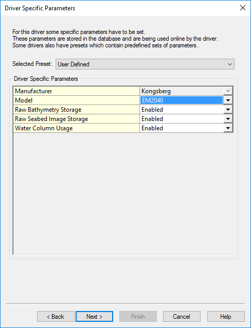 For raw data processing the driver can optionally store raw bathymetry and seabed image records in the Qinsy database.