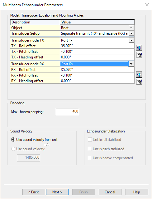 Multibeam Echosounder Parameters