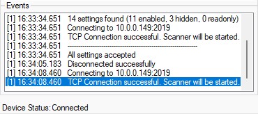 Connected | In order to communicate with the scanner, the driver must make a network connection first.
