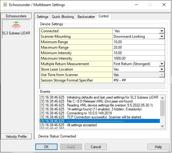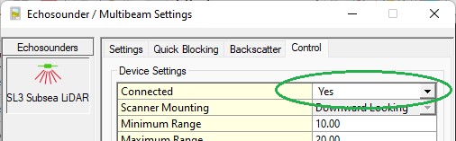 Select Echosounder Settings, click on the Laser System icon and select the 'Control' tab page.
