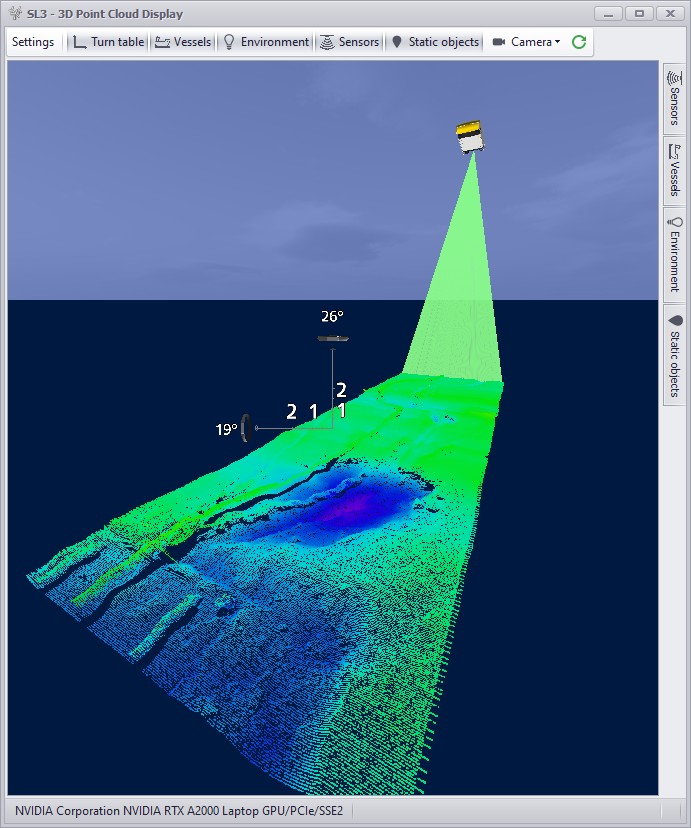 Here you can show data from multiple systems, for example your laser scanner simultaneously with a subsurface multibeam system.