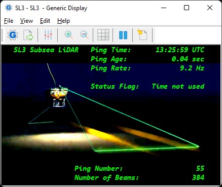 the number of beams (laser returns) per second, the ping rate (number of scan lines per second), the ping age (sec), status indicators, etc.