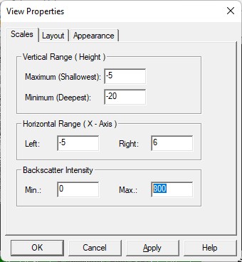 Set the Backscatter Intensity min/max scale between 0 and the maximum expected intensity value (in this example 800).