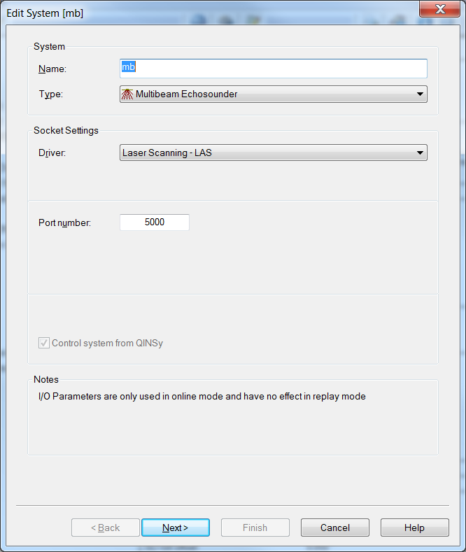 Add a Multibeam Echosounder system to your template setup and select from the list driver "Laser Scanning - LAS".