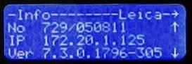 It is also possible to change the IP address of the laser LAN network, in case you can not modify your computer's IP address, or in case you need to connect to more than one laser scanner. e.g. via a network switch. It is recommended to consult the LEICA HDS6000 User Manual in order to do this. Please find here a summary:Use the on-board keyboard and press the Right-Arrow button for more than 3 seconds, until the beep.