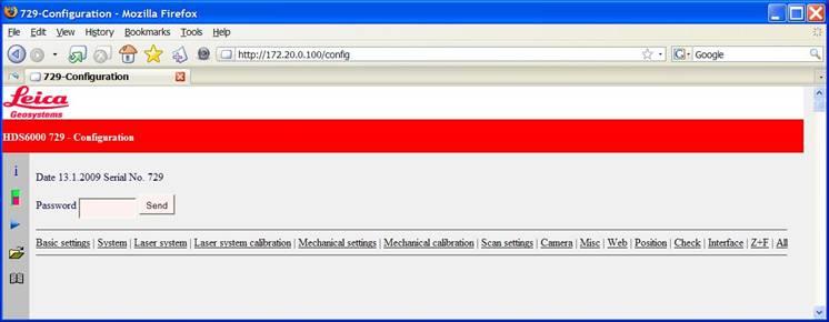 Viewing current configuration is always possible; however, changing settings requires a password. For general settings you may use password 'lara', for advanced settings you need a password (which expires in time) from LEICA or Zoller+Fröhlich support.