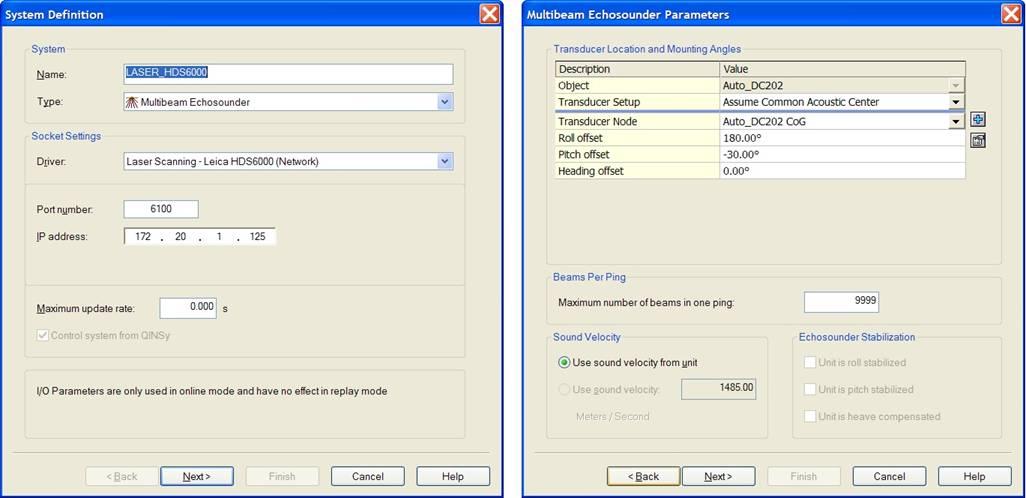 Add a Multibeam Echosounder system to your template setup, and select driver "Laser Scanning - LEICA HDS6000/HDS6100 50Hz (XML)".