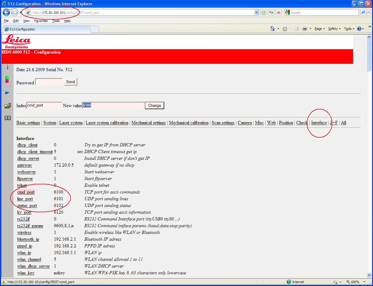 To view and/or change the current port values set by the scanner, you must use the web browser interface. You can not use the on-board keyboard for this. Please follow these steps:Start your default web browser, and connect to the laser unit using its IP address.