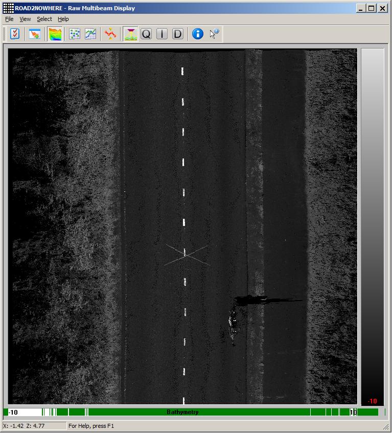 Make sure to set the Backscatter Intensity range from 0 to 2,000,000 (or experiment with some other values), set Color Coding to 'Backscatter', and View Mode must be set to 'Bathymetry' (Appearance tab page).