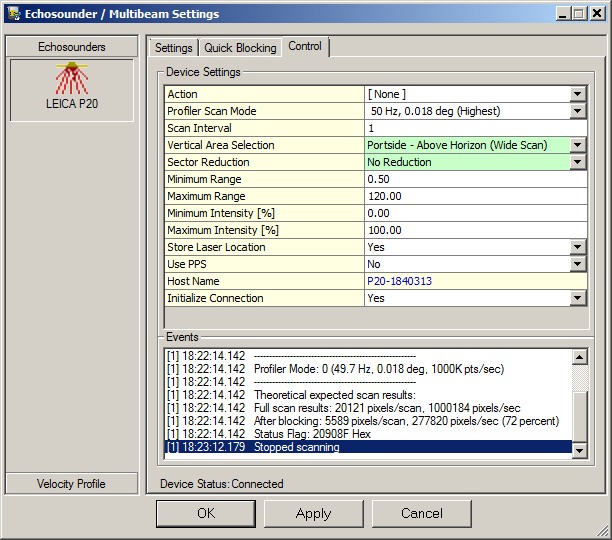 Although the ScanStation may output 1 million points per second, be aware that Qinsy handles only approximately 250 thousand measurements per second. This value can be safely much higher but depends highly on the used hardware.