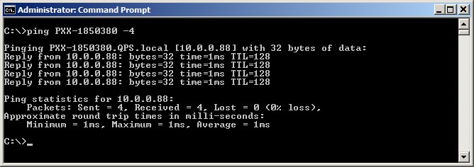Select Start from the Windows Task bar, Run..., Cmd <Enter>, and 'ping' the host name of your laser unit.