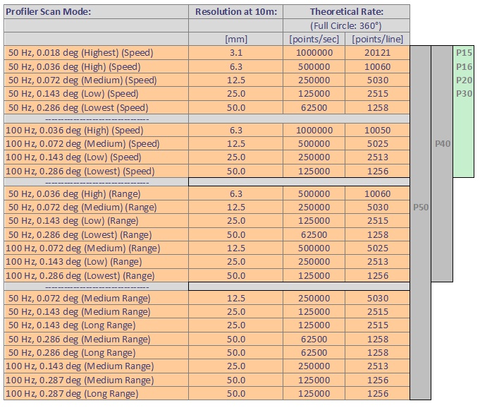 Another difference is the laser class being used: The P15 and P20 use class 2, which is not eye safe. The other scanners use the eye safe laser class 1.