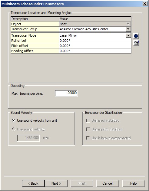 Store Laser Location | If enabled, an additional pixel with zero range will be added to each line scan, in order to indicate the exact laser scanner location in the resulting point cloud. |