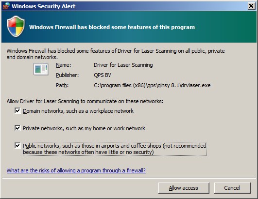 If you now go online, the Windows Security Alert message will pop up: It is important to tick all three check boxes!