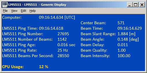 The Generic Display can be used to show the numerical values for the number of beams (pixels) being scanned per ping (scan), the number of beams being scanned per second, the ping rate (scan rate in Hz), range values, etc.